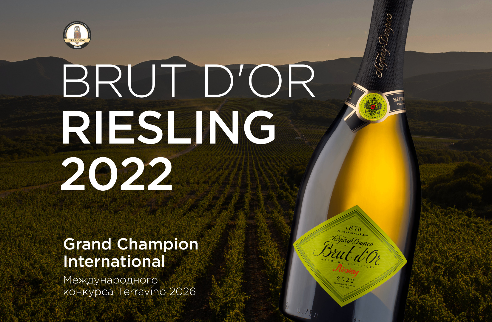 Классическое игристое вино Brut d’Or Riesling 2022 года Группы компаний «Абрау-Дюрсо» сенсационно завоевало звание Гранд-чемпиона (Grand Champion International) на ведущем дегустационном конкурсе TERRAVINO 2026. Титул присуждается только одному вину — лучшему среди всех участников из разных стран. Всего винами Группы компаний «Абрау-Дюрсо» на конкурсе TERRAVINO 2026 получено 6 наград.